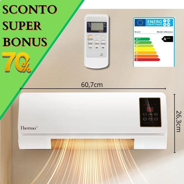 Wyposażony w potężny silnik bezszczotkowy o wysokiej efektywności z systemem inwertera, emituje ciepło 8 razy szybciej, ogrzewając cały dom w kilka minut, jest jedynym urządzeniem wyposażonym w opatentowany system Safe-Energy, który optymalizuje zużycie energii, radykalnie redukuje koszty na rachunkach, zużywa około 0,27 centów dziennie przy maksymalnej mocy. Kontrolowany zdalnie za pomocą pilota, pozwala na ustawienie temperatury, timera, automatyczne włączanie i wyłączanie, aby dostosować się do wszelkich potrzeb. ThermoFast V3.0® instaluje się szybko w kilka minut, korzystając z dołączonych specjalnych śrub i uchwytów, ponieważ nie jest przewidziane żadne zewnętrzne urządzenie. Niezwykle cichy dzięki najnowszej technologii systemu audio (zaledwie 18 decybeli), idealny podczas snu.