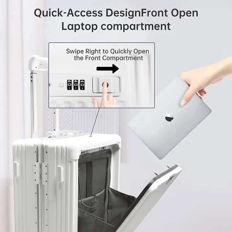 DuraCase è stata pensata per il viaggiatore tecnologico. Il suo scomparto frontale si apre con un semplice pulsante e da accesso ad uno spazio apposta per il proprio tablet e laptop.