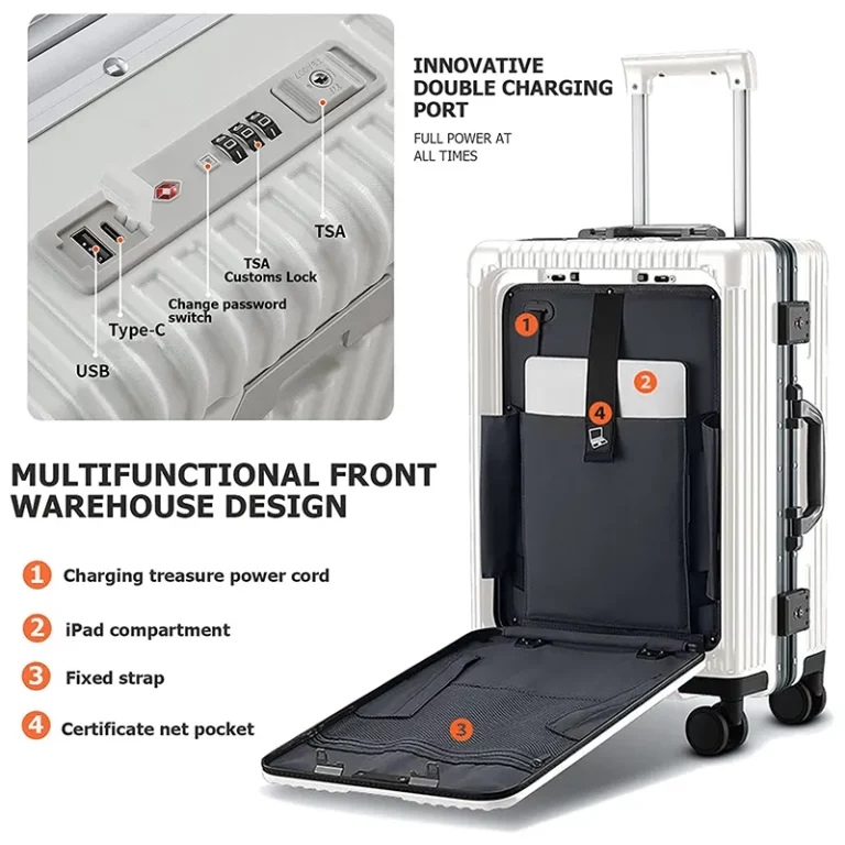 Lunga attesa tra uno scalo e l’altro? Il manico si apre e fornisce un supporto per smartphone, in questo modo si potranno vedere le proprie serie preferite nell’attesa.